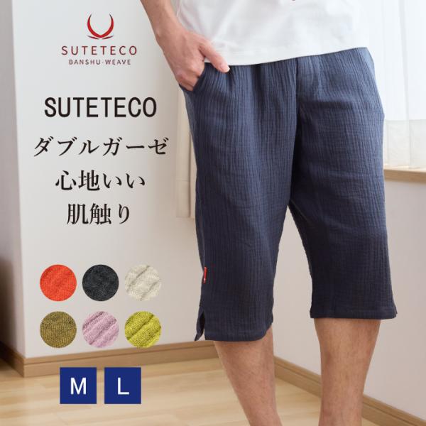 ステテコ メンズ 綿100% 春夏 ルームウェア ハーフパンツ ダブルガーゼ 播州織 7分丈 部屋着 ショートパンツ おしゃれ ガーゼ ルームパンツ 楊柳 肌着 男性 紳士