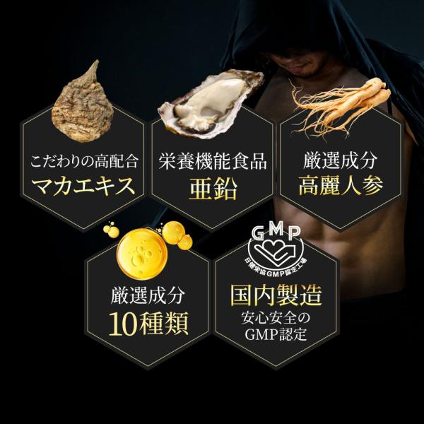 マカ、亜鉛、シトルリン、アルギニン、ローヤルゼリー、タウリン、クラチャイダム(黒ウコン)、