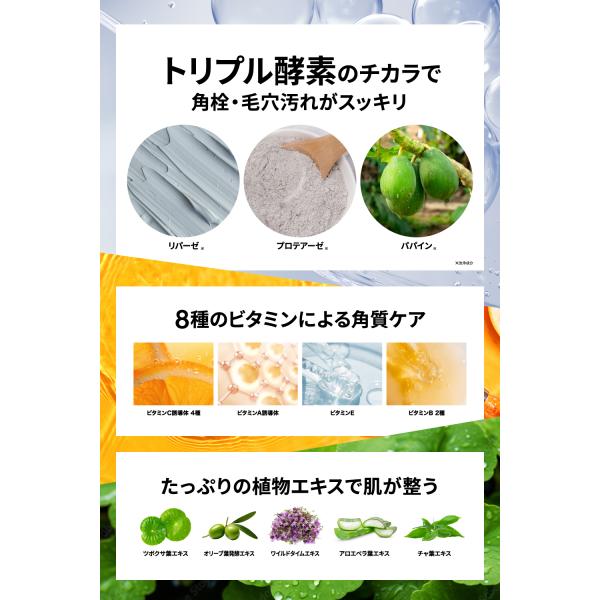 洗浄によりニキビや肌荒れ、テカリを防ぎ、古い角質や角栓をすっきり除去。