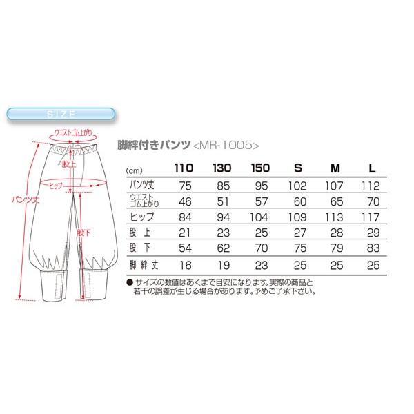 S:総丈102/ウエストゴム上がり60/ヒップ109/股上27股下75脚絆丈25