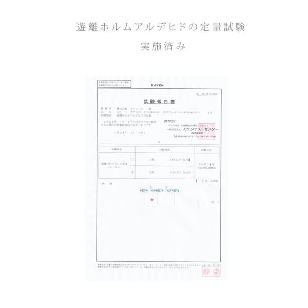 ノンホルマリン:遊離ホルムアルデヒドの定量試験済