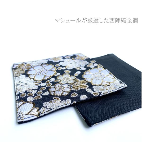 金襴コースター【桜づくし 黒】2枚セット 和柄コースター 和風コースター コースター 金襴 西陣織 和柄 和風 京都 金らん 金蘭