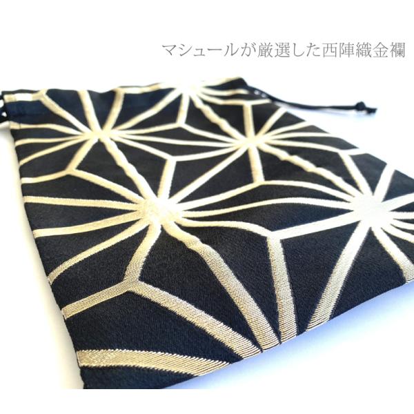 マシュールが厳選した豪華で高級な西陣織金襴を使用した巾着。