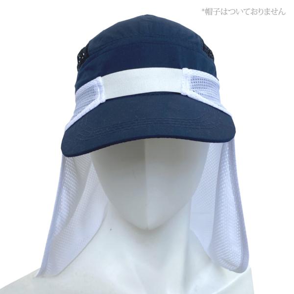 帽子にかぶせて簡単装着できます。首筋を日差しから守る。