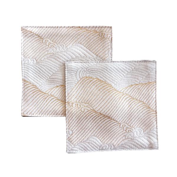 金襴コースター【白波】2枚セット 和柄コースター 和風コースター コースター 金襴 西陣織 和柄 和風 京都 金らん 金蘭