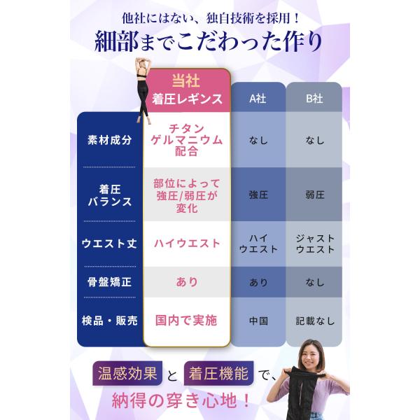テーピング加工がしっかりと外側から内側に向かって頑固なお肉をギュギュッと加圧シェイプ。