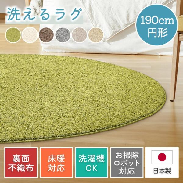 ラグ 洗える 円形 シンプル 190 cm ホットカーペット 無地 床暖房 防ダニ 手洗い 床暖 滑りにくい 遊び毛が出にくい 毛足 長い 洗濯機 プレーベル ジャスパー