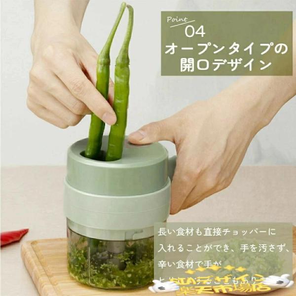 電動スライサー 充電式 野菜スライサー ネギ カッター 電動 1台多役 電動 小型 USB-C 簡単洗浄 スライス みじん切 4in1 ポータブル 小型 スラ