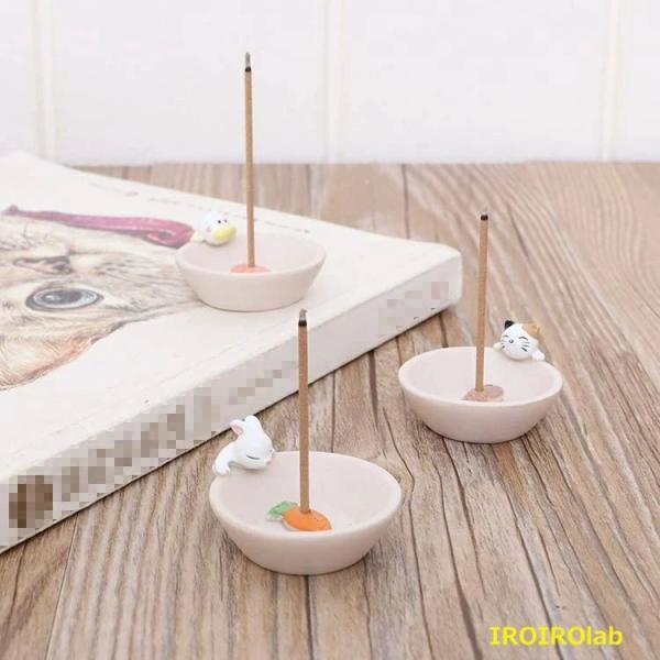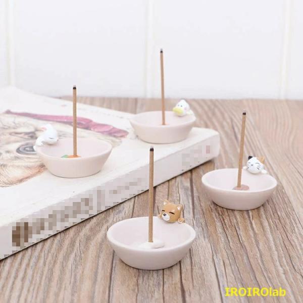 線香立て付 線香皿 犬 猫 お香立て 線香差し