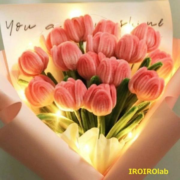 カラーモール 手作りキット 花束 130本 手芸モール DIY 手芸モール モールフラワー チューリップ15本 作れる モールアート ローズ9本 包装紙