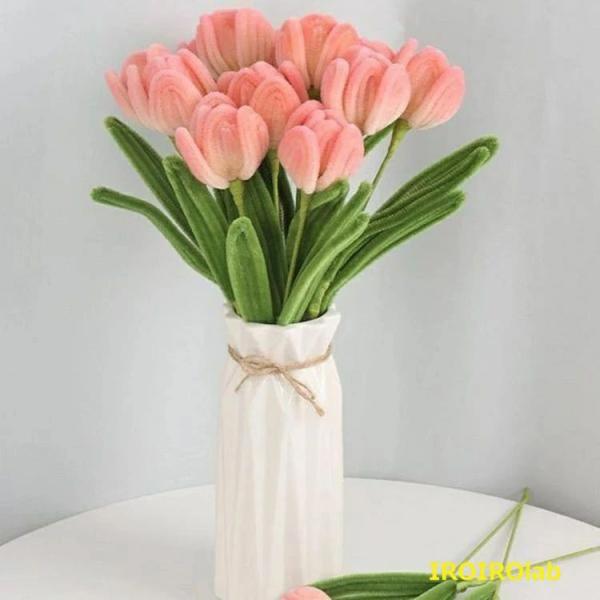カラフルなモールを使って、チューリップやローズなどの可愛いお花を手作りできるDIYキット。