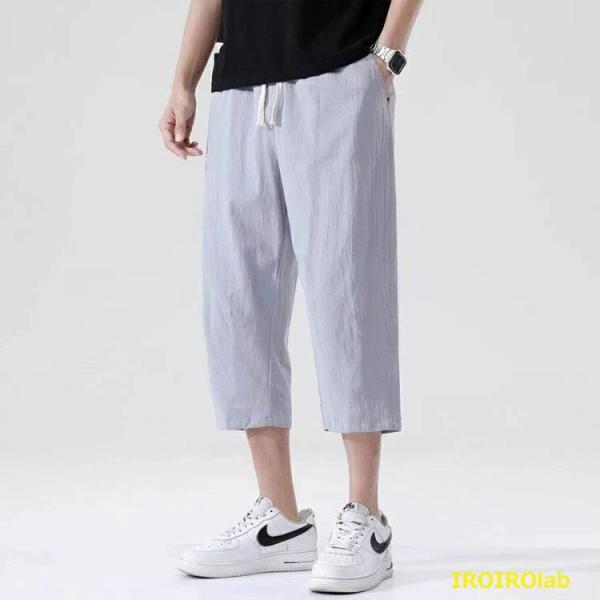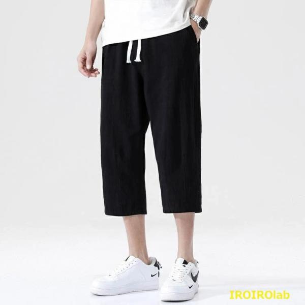 七分丈 2枚組 コットンパンツ ひざ下 ハーフパンツ 涼感 メンズ イージーパンツ スリット サルエル 無地 ルームウェア 涼感 クロップドパンツ