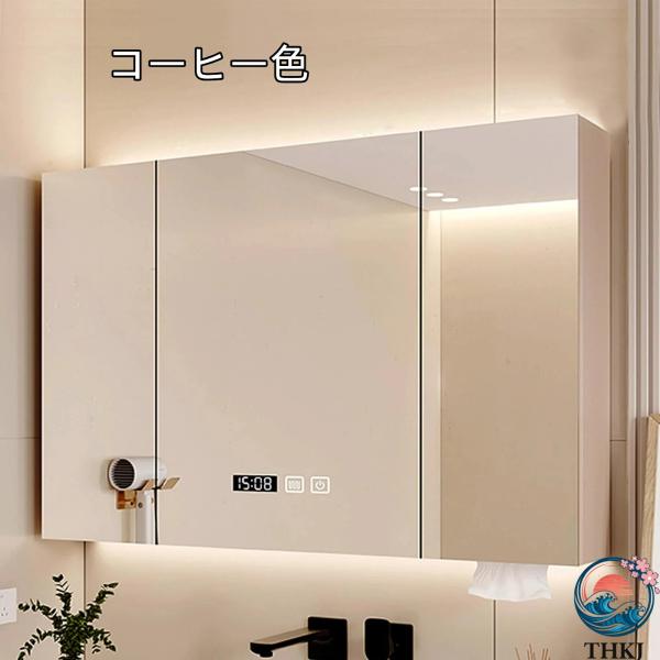 多機能壁掛けミラーキャビネット LED照明ミラーキャビネット洗面所 ミラー 曇り止め浴室鏡 多層収納 防水 ファッション 省スペース 簡単収納