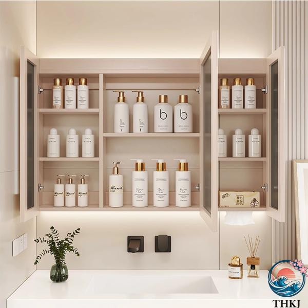 ? 【環境に優しいデザインと多機能】:ミラーキャビネットは飛散防止ガラスを備えたスペースアルミニウム素材で作られており、ホルムアルデヒドの放出を最小限に抑え、より高い安全性を確保し、バスルーム環境に適しています。 安全機能に加えて、ティッシュボックススロット、化粧品陳列エリア、ペンダントエリアなども利便性を高め、バスルームの整理整頓と快適性を高めます。