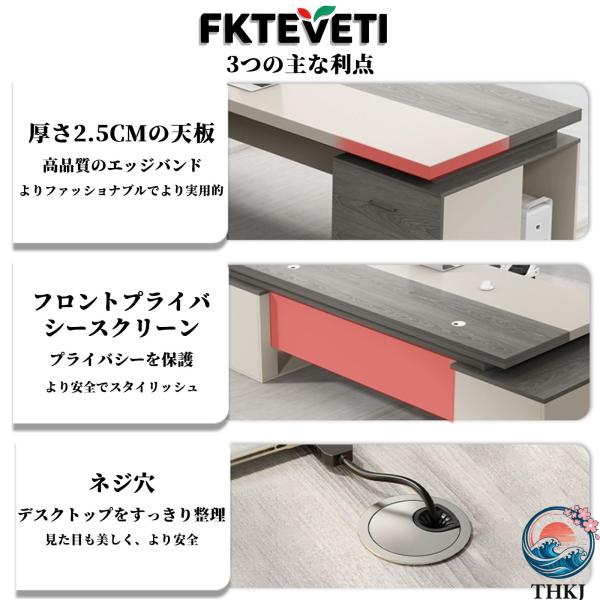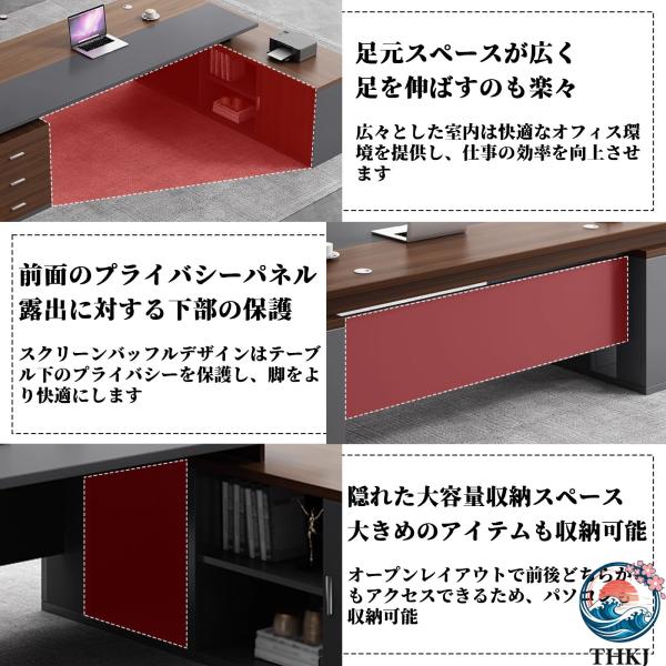 社長デスク エグゼクティブデスク 役員デスク L型 社長机 L字デスク 2.5CMの厚みのあるデスクトップ 会議用テーブル 書斎机 社長室 社長テーブル 法人様向け ワ