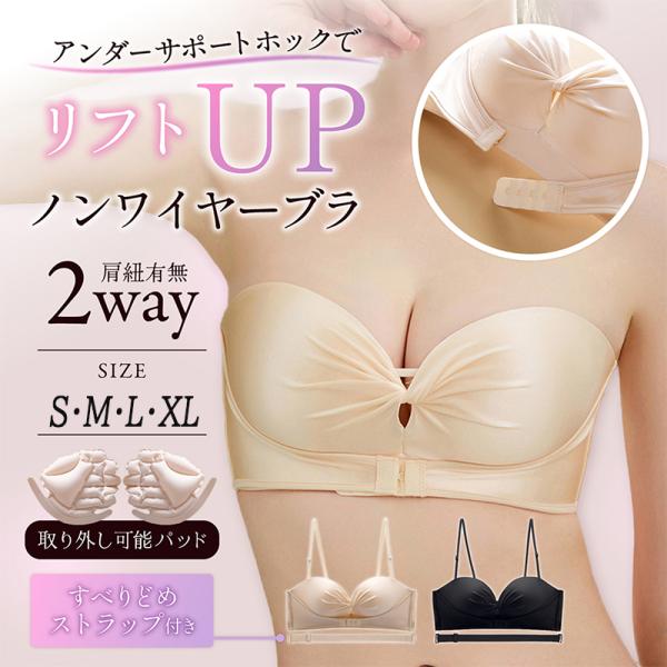 ストラップレス ブラ ノンワイヤーブラ ワイヤレスブラ シームレス ブラジャー 1/2カップ 大きいサイズ 盛れる ずれない ワイヤーなし 紐なし 盛り 爆買