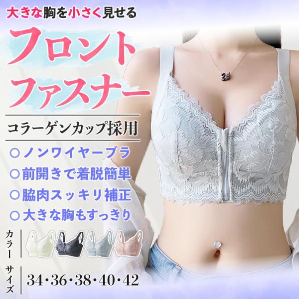 フロントホックブラ 大きな胸を 小さく見せるブラ 大きいサイズ ぶら ナイトブラ ブラジャ− 補正 ノンワイヤーブラ ワイヤーなし 涼しい 爆買