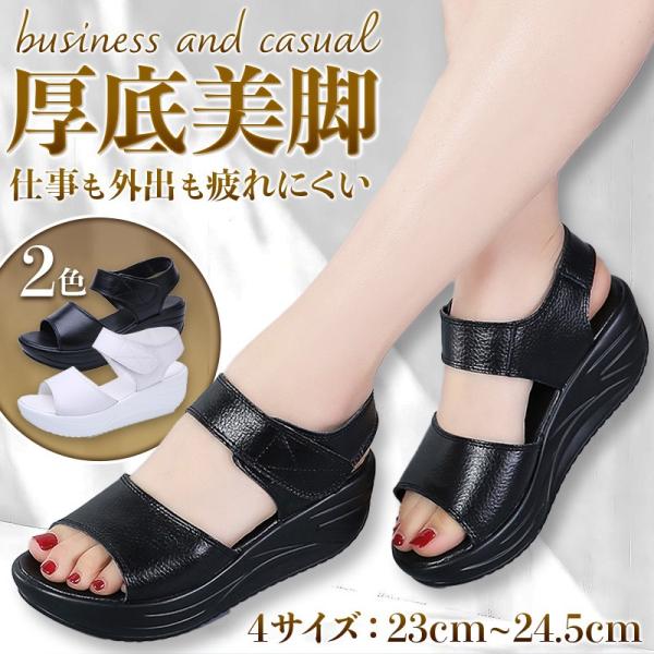 厚底サンダル 本革 オフィスサンダル ナースサンダル ナースシューズ レディース 歩きやすい 疲れない 黒 白 看護師 事務所用 事務医療 美脚 軽量 船底 爆買