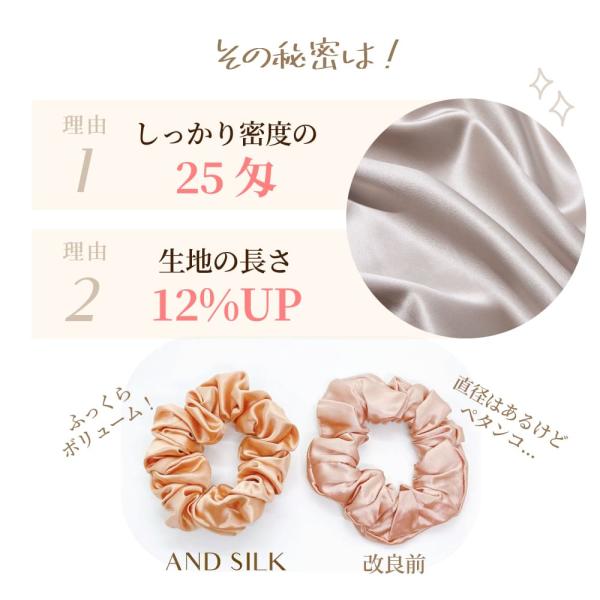 ANDSILKのシルクシュシュには、最高級ランクの6Aシルク100%を採用。