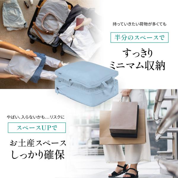 衣類やタオルなどかさばる旅行の荷物をぎゅっとコンパクトにできる、圧縮トラベルポーチ。