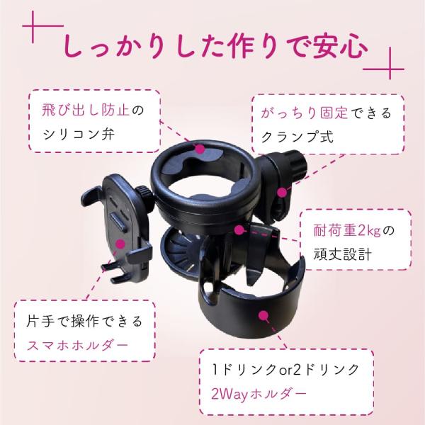 ベビーカードリンクホルダー 2つ スマホ スマホホルダー ドリンクホルダー 2個 ベビーカーグッズ 便利 飲み物 バギー ハンドル フロントバー サイド
