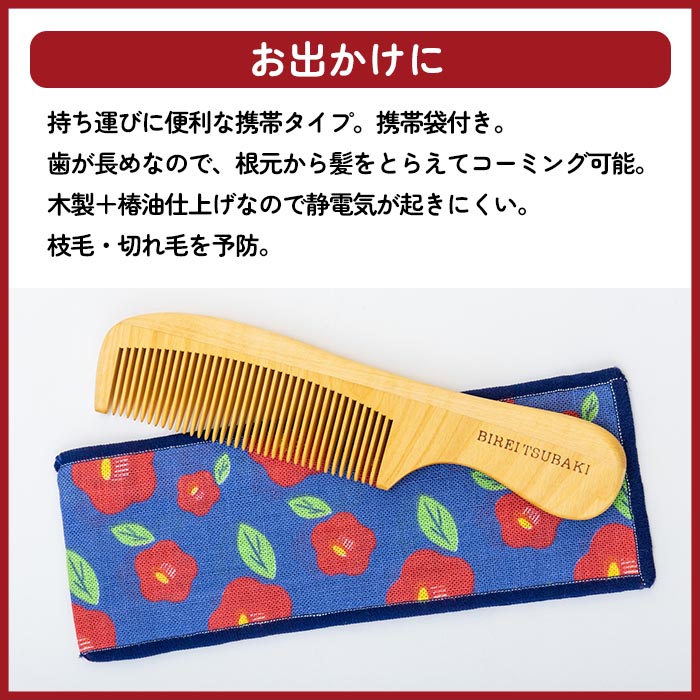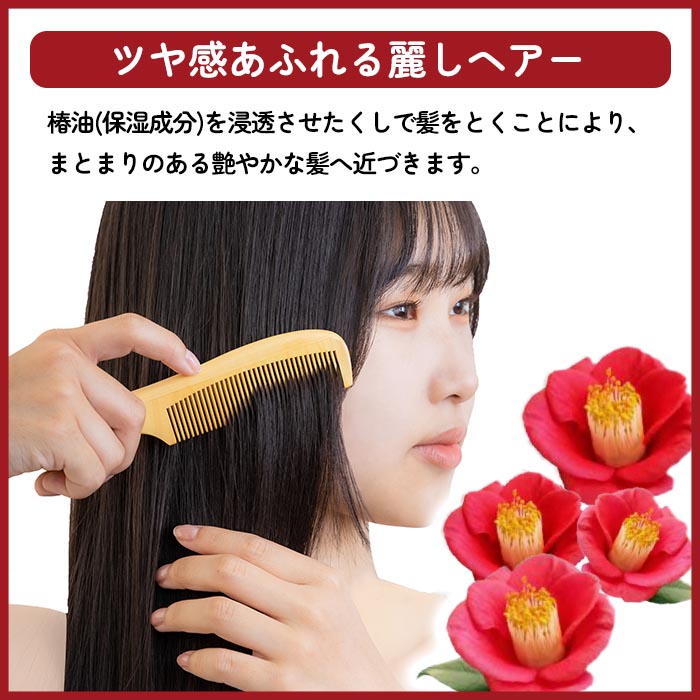 ・木製+椿油仕上げなので静電気が起きにくい。枝毛・切れ毛を予防。