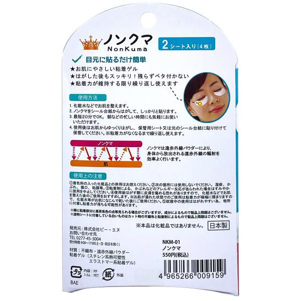 アイシート 目元ケア 遠赤外線 保温効果 ビーエヌ ノンクマ ノーマル ワイド クマ対策 目のクマ アイシート 貼るだけ 【▲】/ノンクマ