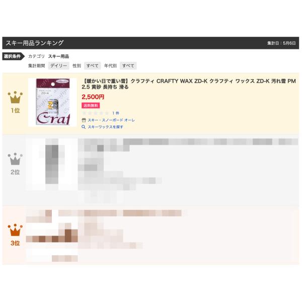 【暖かい日で重い雪】クラフティ CRAFTY WAX ZD-K クラフティ ワックス ZD-K 汚れ雪 PM2.5 黄砂 長持ち 滑る
