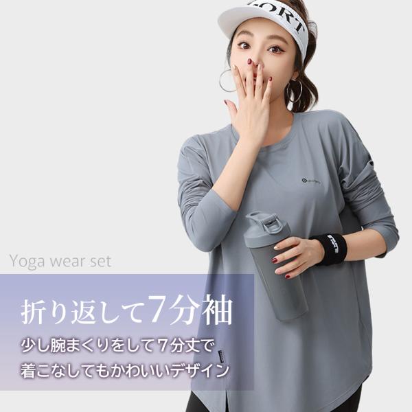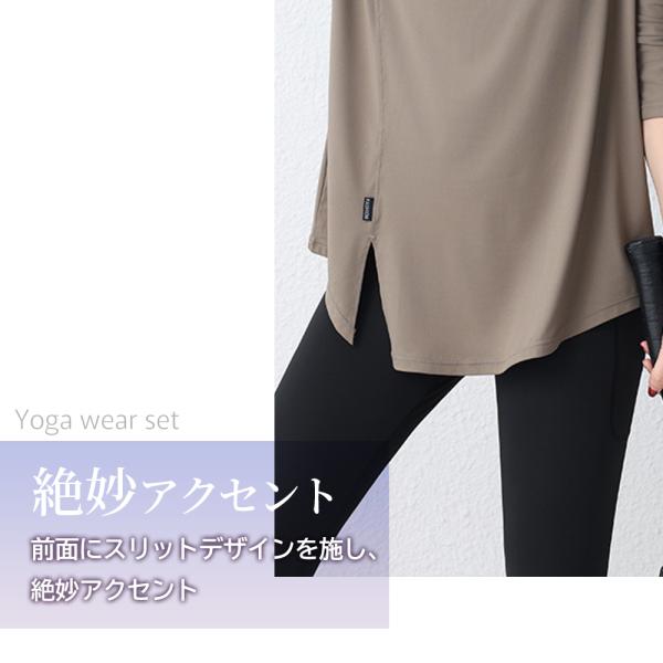 エアリーヨガウェアセット長袖 ヨガウェア上下セット トップス レギンスセット 長袖 ヨガtシャツセット レディース ヨガトップスセット ロング丈セット 丈長め