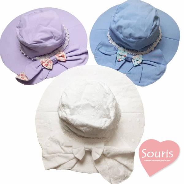 Souris スーリー 「リボン&レース日よけ付きハット」(50-56cm)メール便送料198円対応可