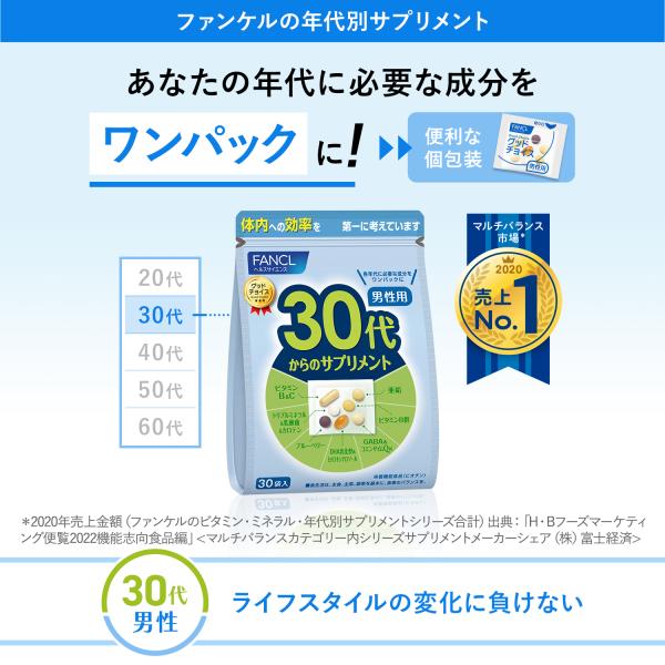 30代からのサプリメント 男性用 栄養機能食品 45〜90日分 サプリメント サプリ ビタミン ミネラル 男性 ギャバ 亜鉛 gaba ファンケル FANCL 公式