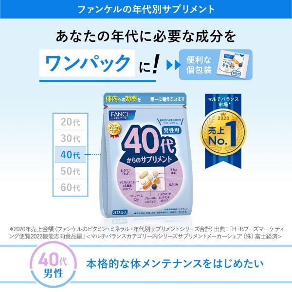 40代からのサプリメント 男性用 栄養機能食品 15〜30日分 サプリメント サプリ ビタミン マカ gaba ルテイン coq10 ファンケル FANCL 公式