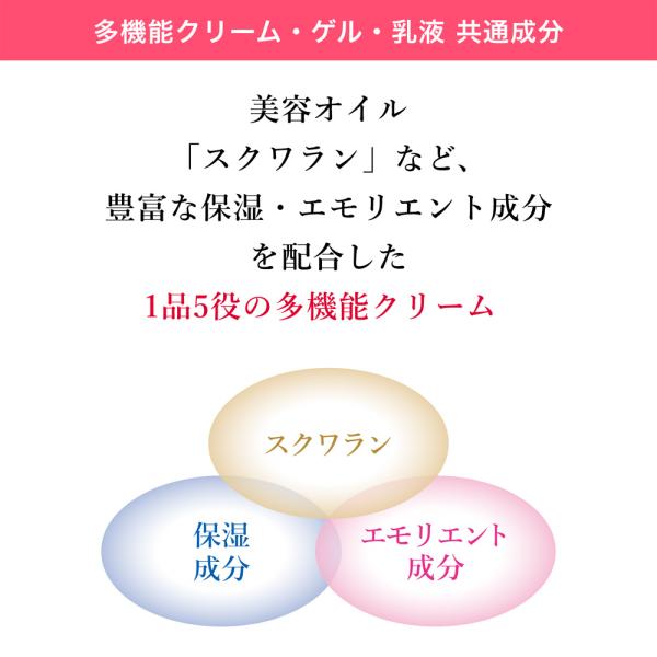 美容オイル「スクワラン」など、豊富な保湿・エモリエント成分を配合した1品5役の多機能ゲル。
