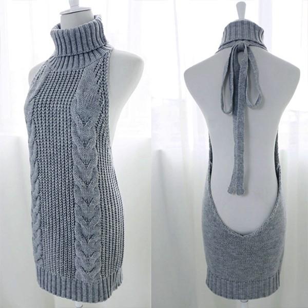 背中が大きく開いた大胆なニットワンピースのセクシーコスプレ。
