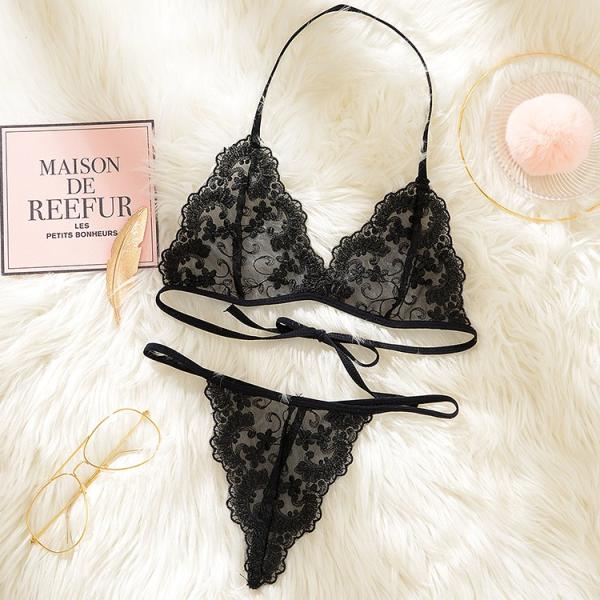 セクシーランジェリー ブラショーツセット セクシー下着 下着セット Tバック 刺繍レース ホルターネック 大人っぽい 3色 ポイント消化「爆買」