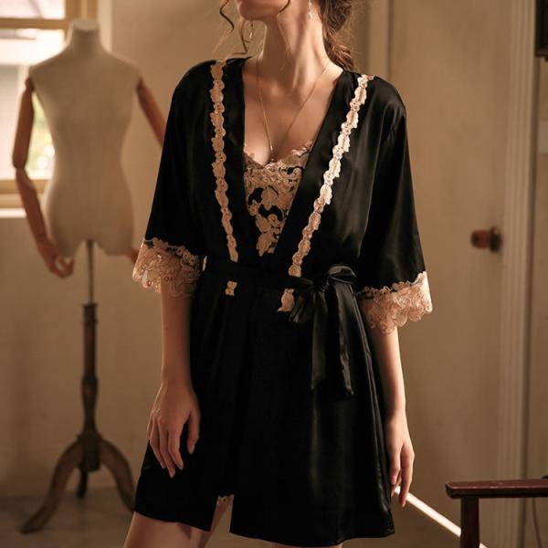 「爆買」光沢感の高級なセクシーナイトローブ3点セット