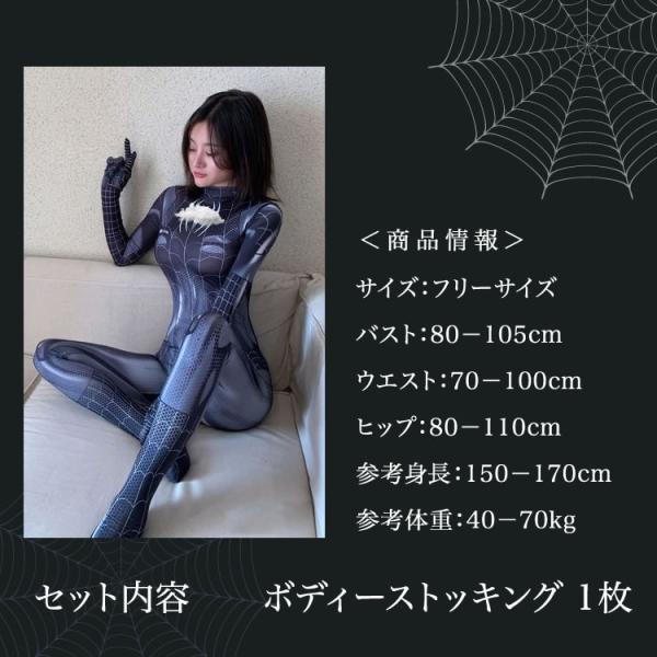 セクシーランジェリー スパイダーガール 全身タイツコスチューム ボディーストッキング 上下一体 開閉可能ファスナー付 フィット感 透け感 オープンクロッチ