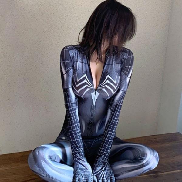 光沢感のある素材がボディーラインをセクシーに魅せるスパイダーガールの全身タイツコスチュームです。