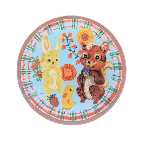 ナタリー・レテ グラス・プレート スクイレル&チアフル・フレンズ・ブルー 子リスと陽気なお友だちの硝子皿