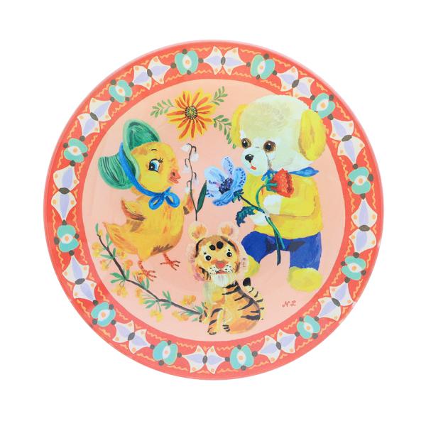 ナタリー・レテ グラス・プレート チック&ラブリー・フレンズ 帽子ひよこと素敵なお友だちの硝子皿
