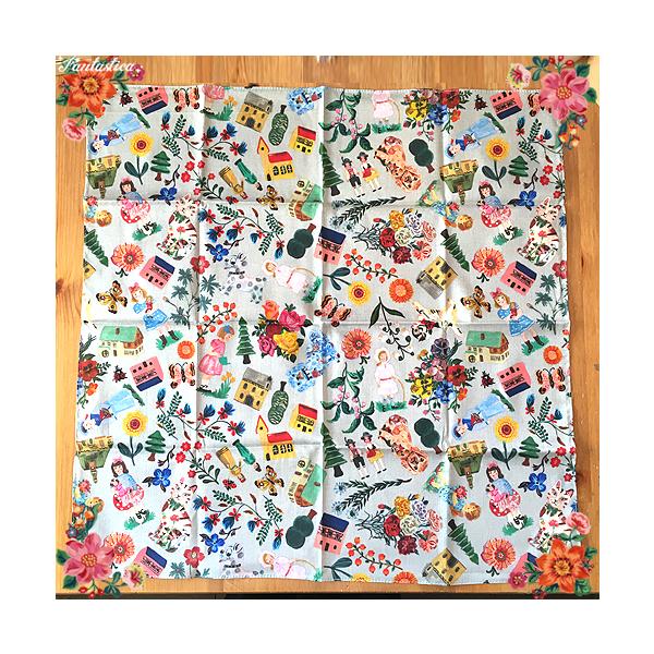 ナタリー・レテ ラージ・ハンカチ ハウス ライフ&ハピネス・ミニ・コットンスカーフ