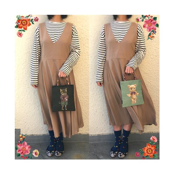 細密な織りが醸し出すシャビーシックな風合いに加え、ナチュラルに醸し出されるシワや織りムラ、ネップやドレープも豊かな味わい。持ち手部分のフォークロア調テキスタイルもワンスパイスのおしゃれを演出します。