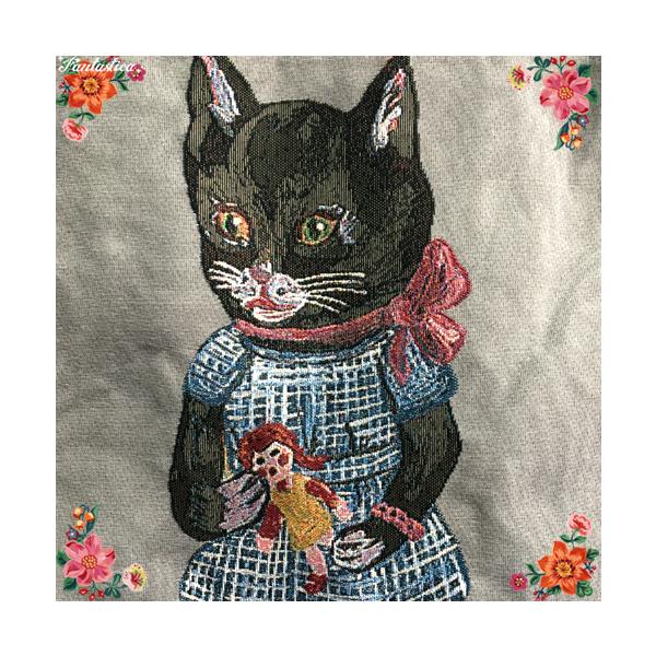 こちらは、お人形を持った黒猫ちゃん、ミッツィをフィーチャーした、大人かわいいアートバッグ。