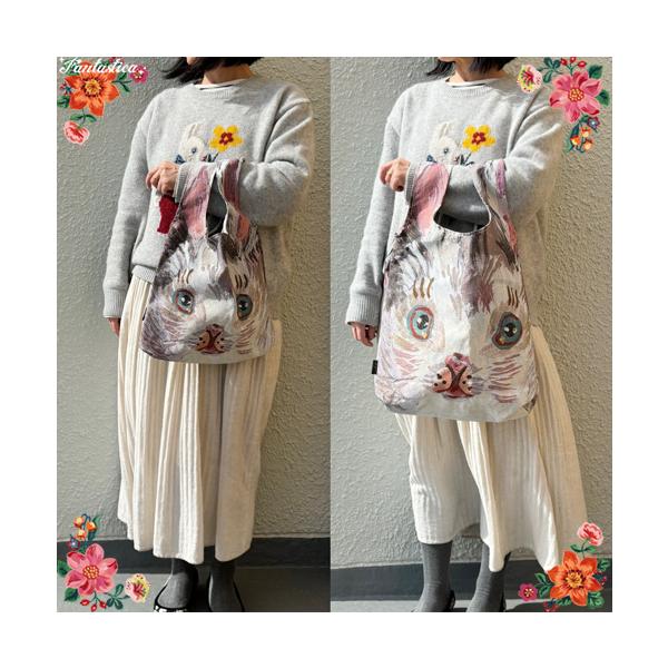 ナタリー・レテ バッグ ブランシュ スモール 白ウサギのつづれ織りフェイス・バッグ Sサイズ