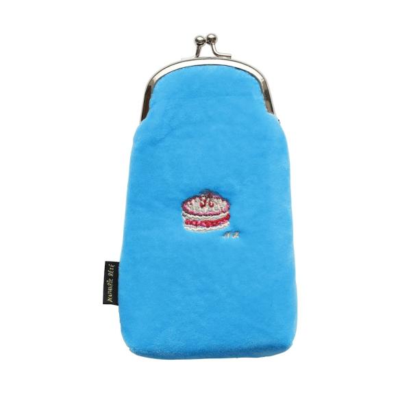 こちらは、大きな青目も美しいクッキング長毛猫さんをフィーチャーした大人かわいい、がま口・眼鏡ケース。