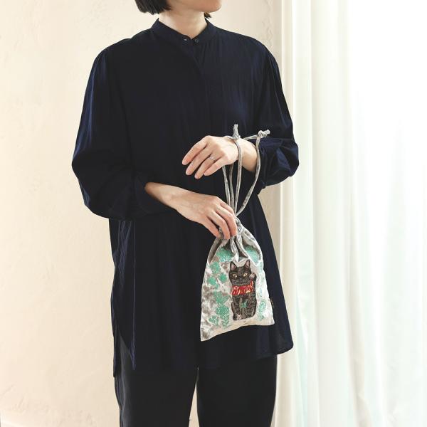 ナタリー・レテ ベロア・ドローストリング・ポーチ ラッキー・キャット 白招き猫のヴェロア巾着バッグ
