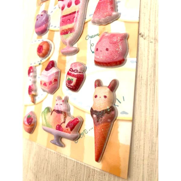 こちらはパフェやスイーツに扮したウサギさんたちをフィーチャーした、ぷっくりやわらかマシュマロシール。