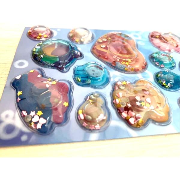 こちらはイルカたちとそのお友だちをフィーチャーした、ぷっくりウォーターシール。