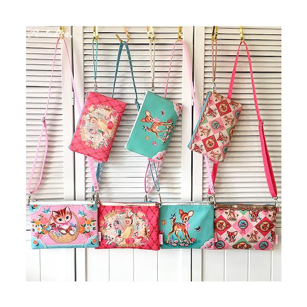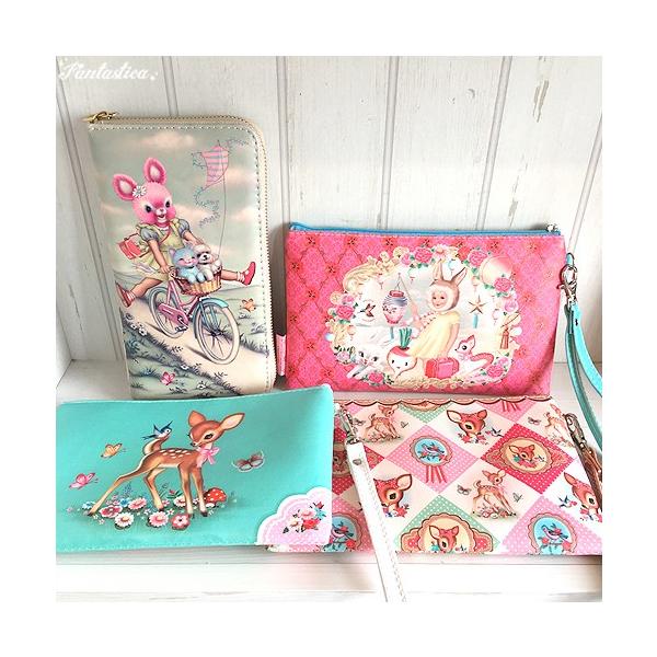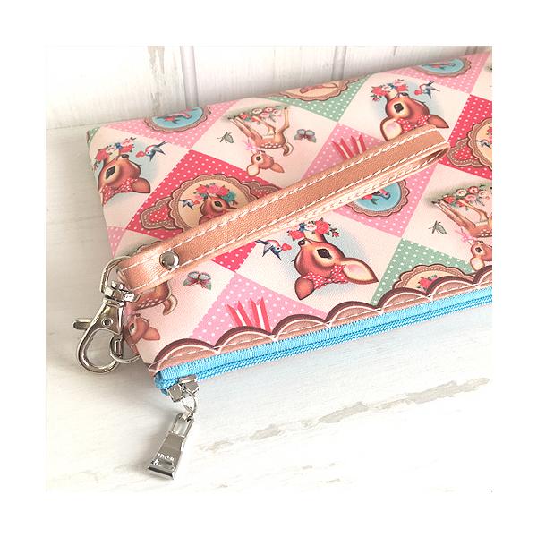 こちらはダイアモンド型にレトロアニマルなバンビや小鳥の姿が描かれた化粧ポーチ。