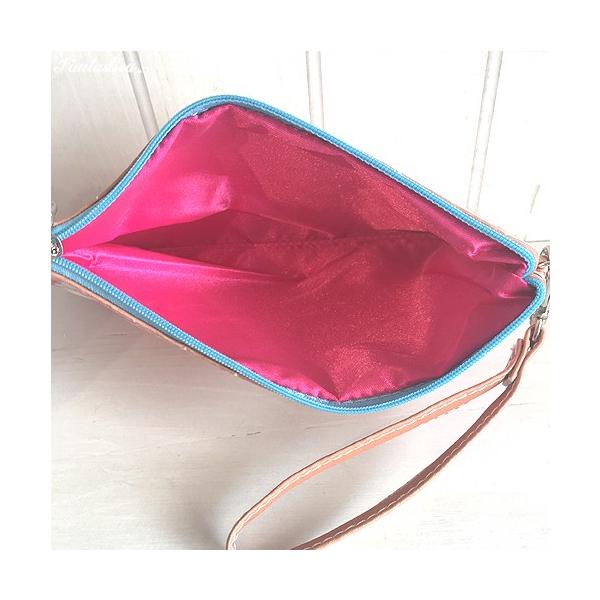 ジッパーを開けば、内部は光沢のあるヴィヴィッド・ピンク一色。